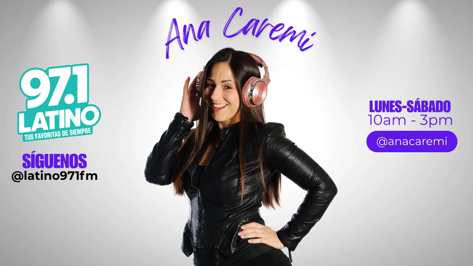 Ana Caremi, la venezolana mas mexicana, enamorada de Dios y de la vida. Mamá comprometida con su crianza consciente. Disfruta mucho bailar, entrenar y caminar al aire libre. Su fuerza está en Dios, e invita a todos a siempre tener fe y FABRICAR FELICIDAD, que se ha convertido en su filosofía de vida. ¡Déjala llevar tu día con la mejor música al medio dia en 97.1 Latino